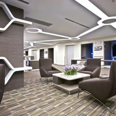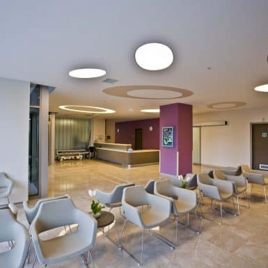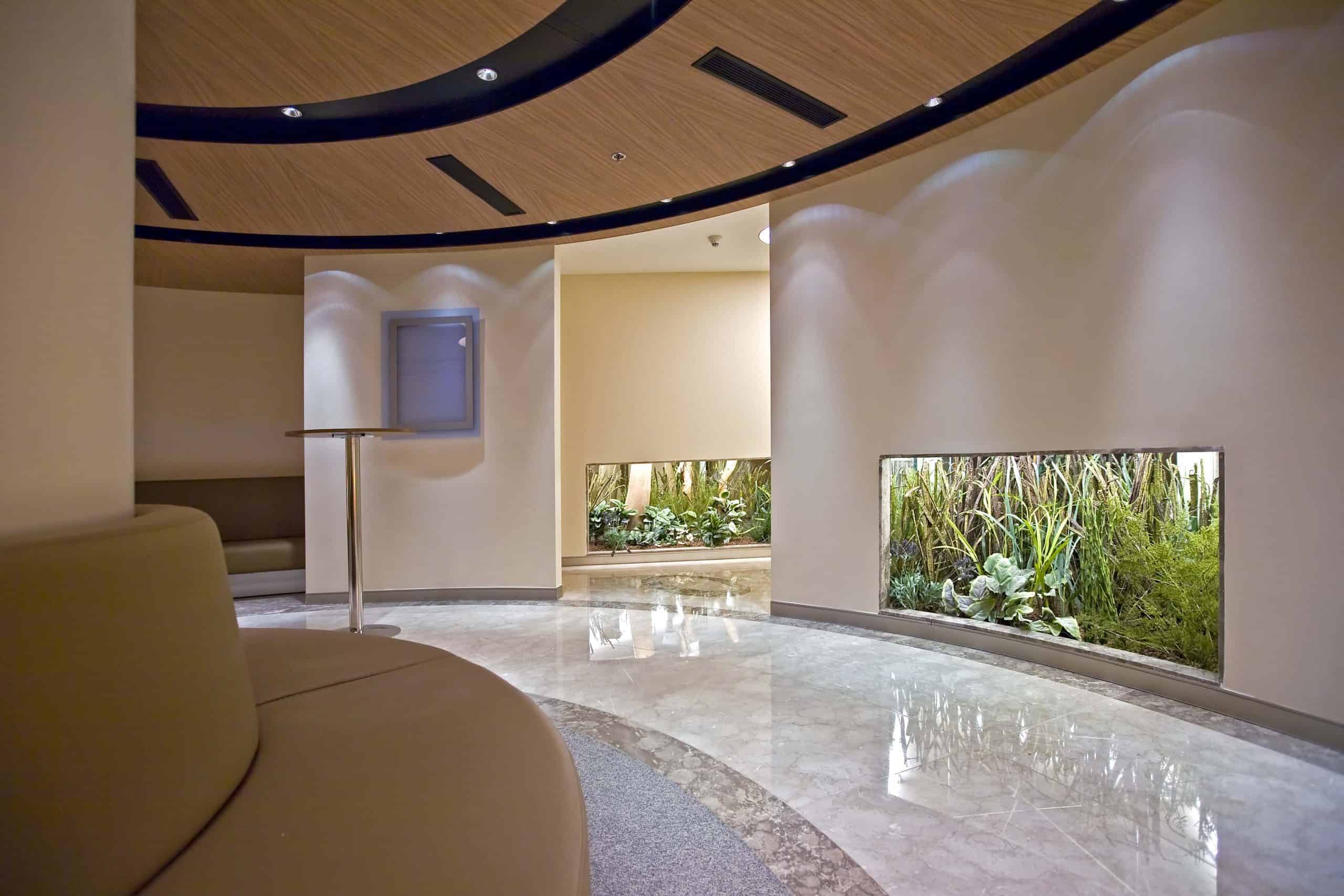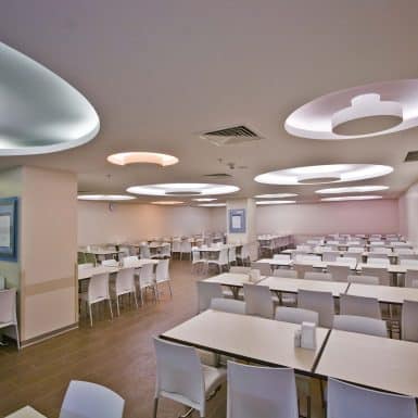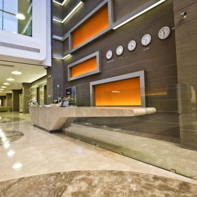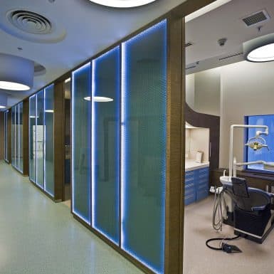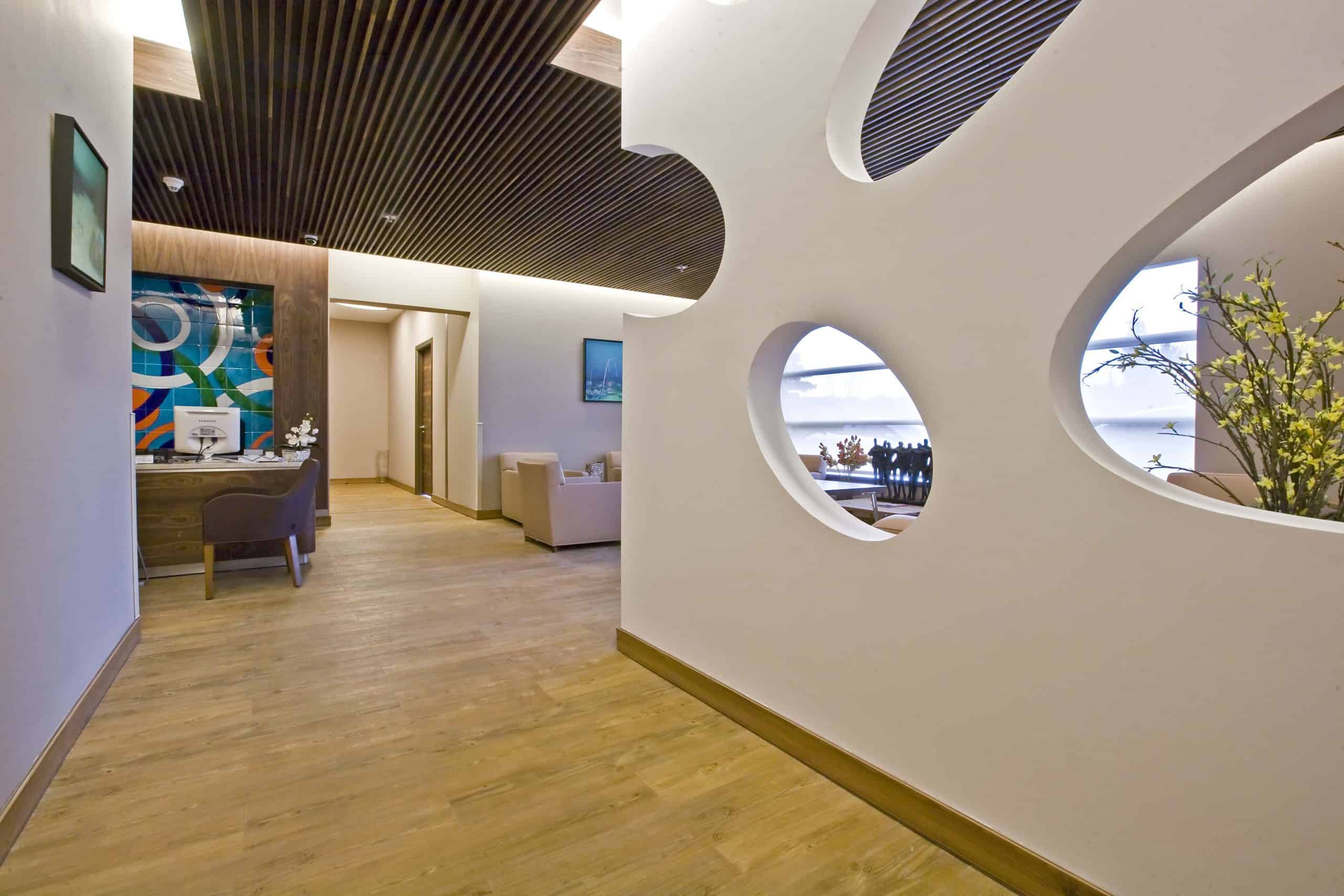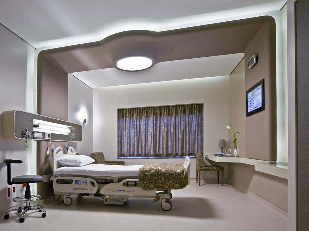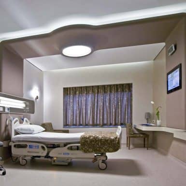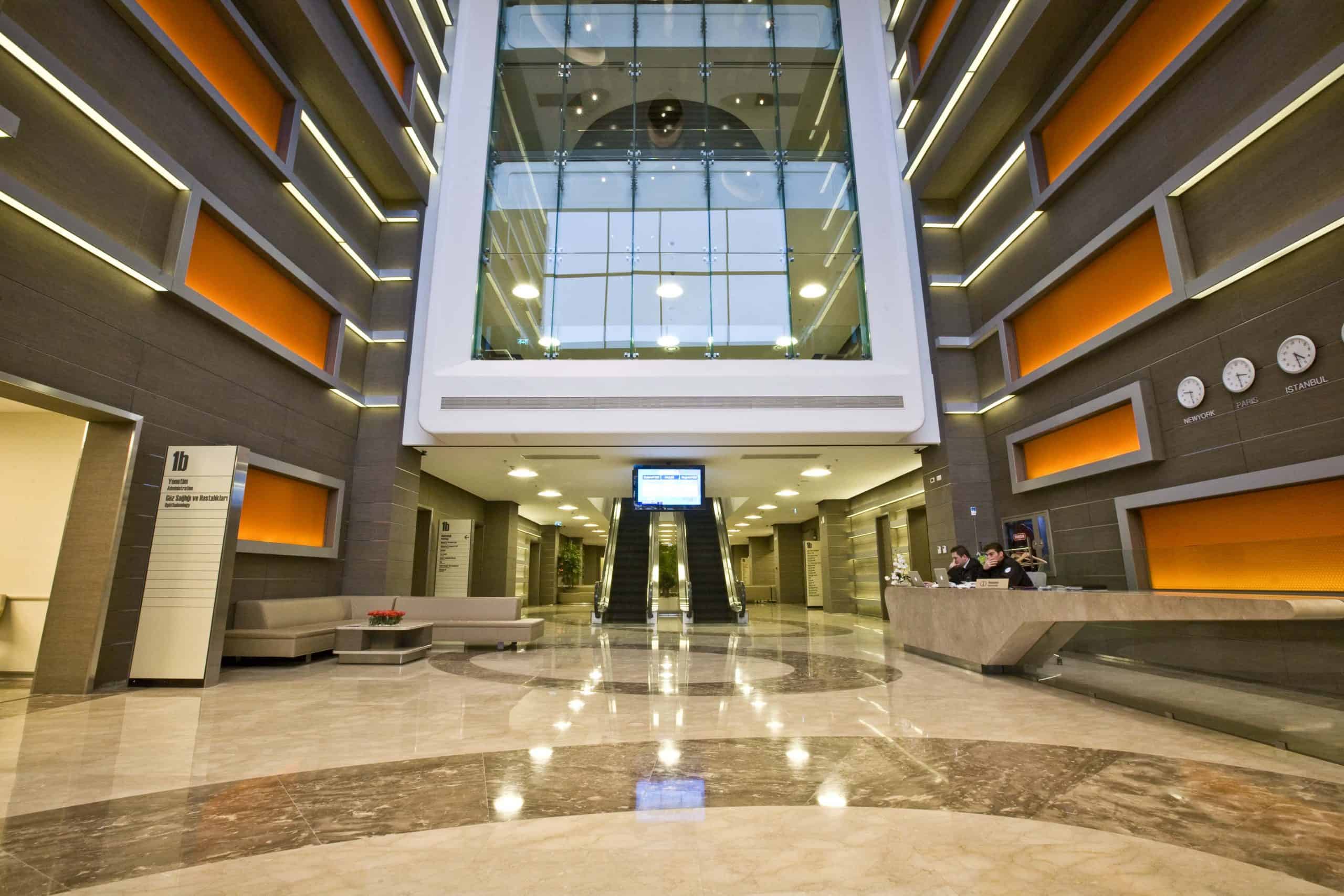 The main distinction of Acıbadem Maslak Hospital is its versatile association with the area of future’s trade center on the direction of city expansion where several cultural and social facilities are located. Besides its proximity to the city center and easy transportation facilities including the subway directly connecting to the hospital, another major charateristic is its unique position almost inside the city forests. The microscopic view of epithelium tissue, which is a crystallized net, is used as the base for the conceptual interior design in patient floors and taken as the distinctive mark of the design. The shape of the epithelium tissue is stylized by merging the form into one plane and applied to ceilings as concealed lighting. The patients are taken to their rooms through this specifically illuminated environment. In the patient rooms, a continious arc shaped unit has been designed which covers all technical equipments and special lighting components. The form of the unit is designed for giving the feeling to patient that he/she is at the focal point of all attention and services. The comfort of the patients are increased with various acoustic solutions such as carpet floorings, acoustic ceilings and second glass shell on the façade to prevent the traffic noise while silent common areas are designed for visitors.