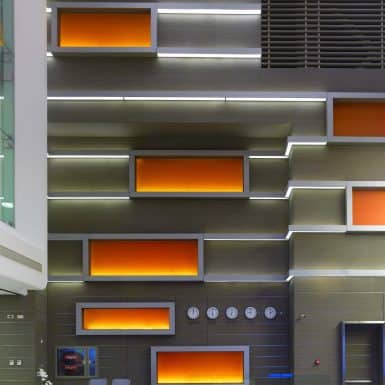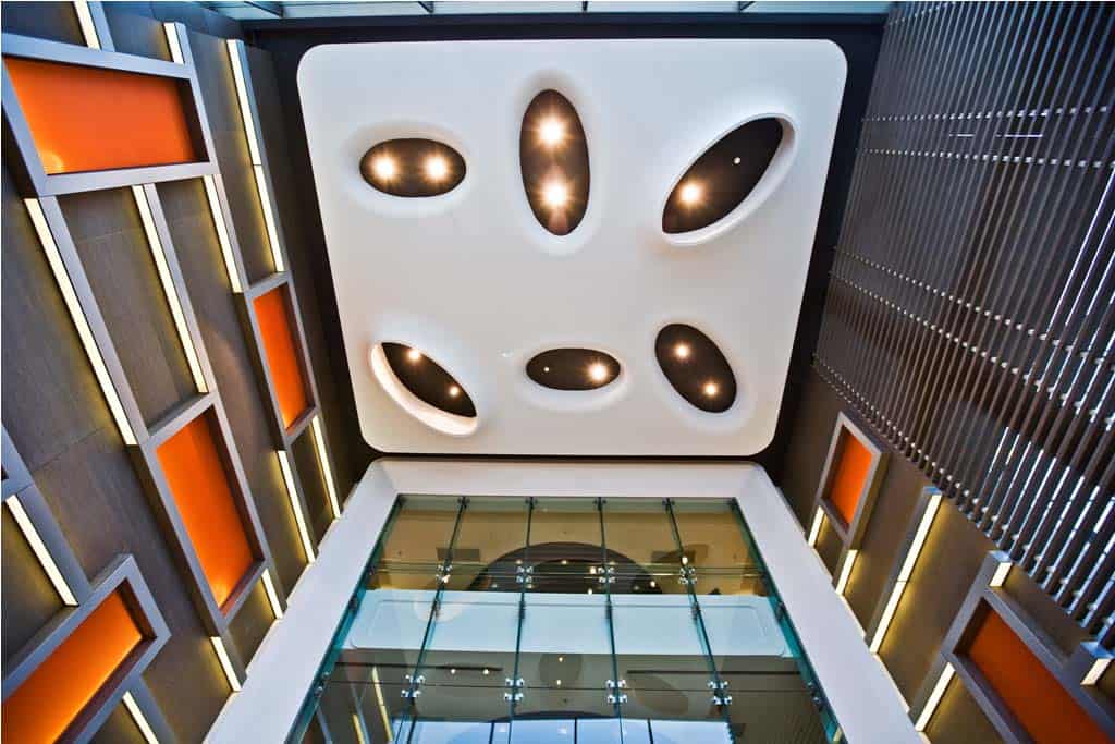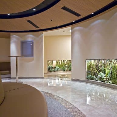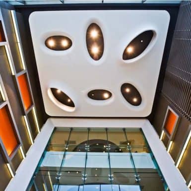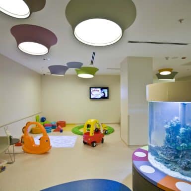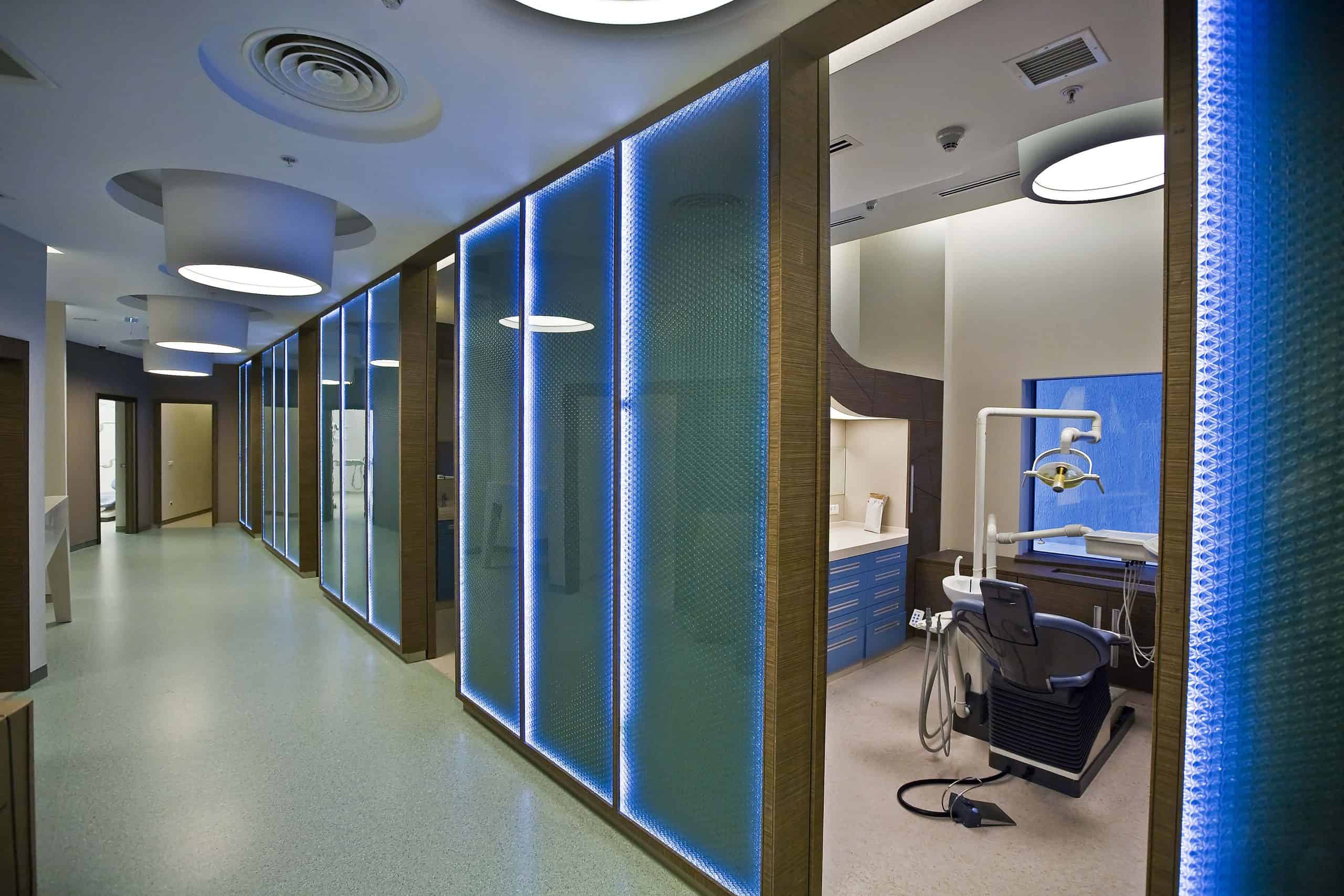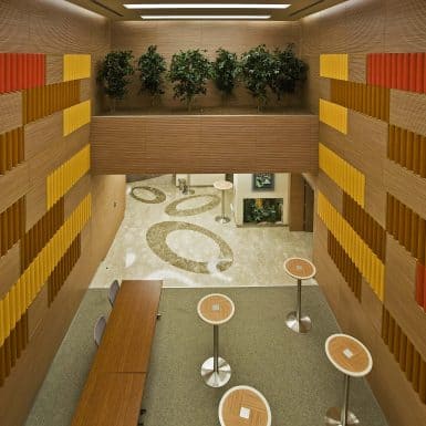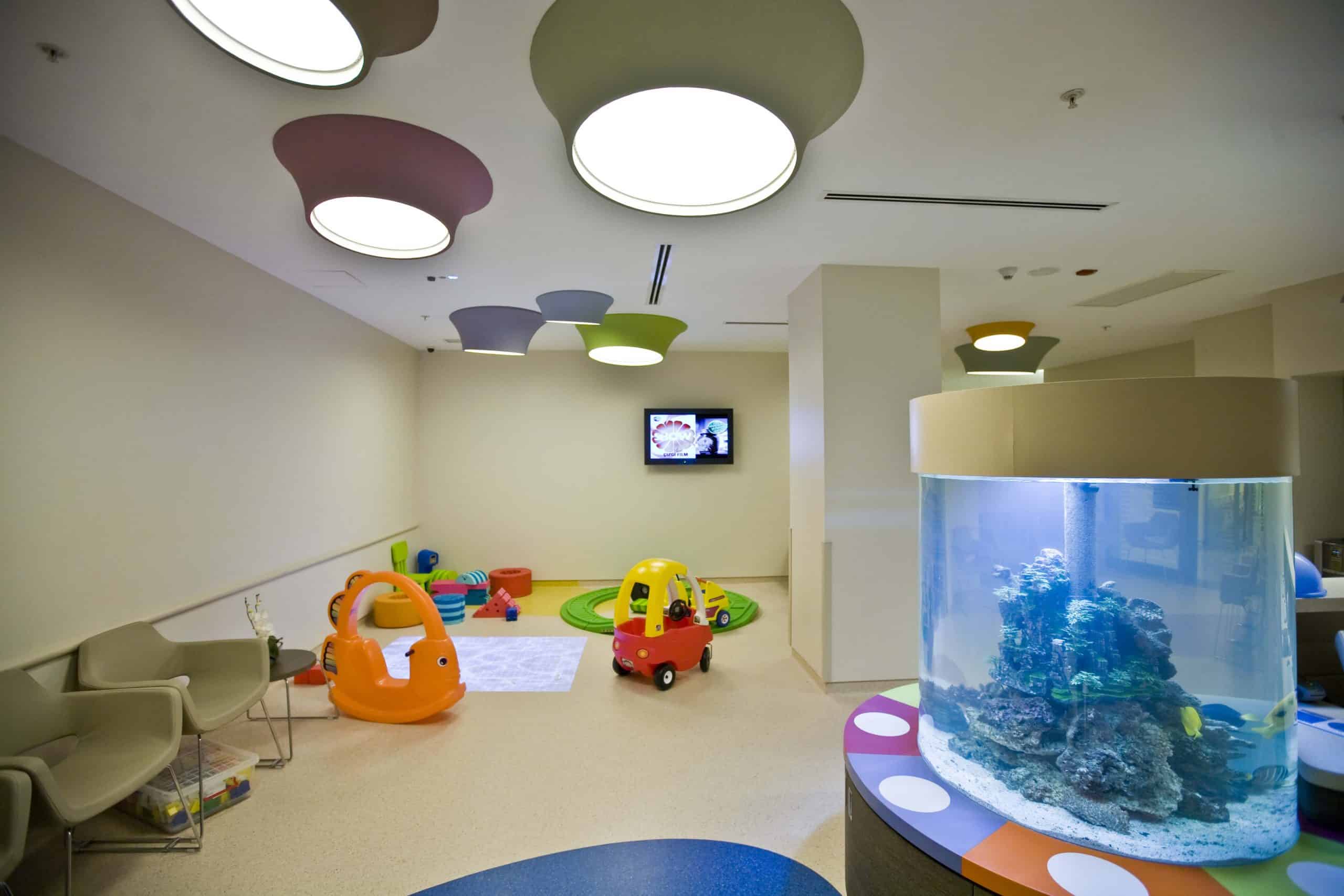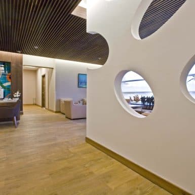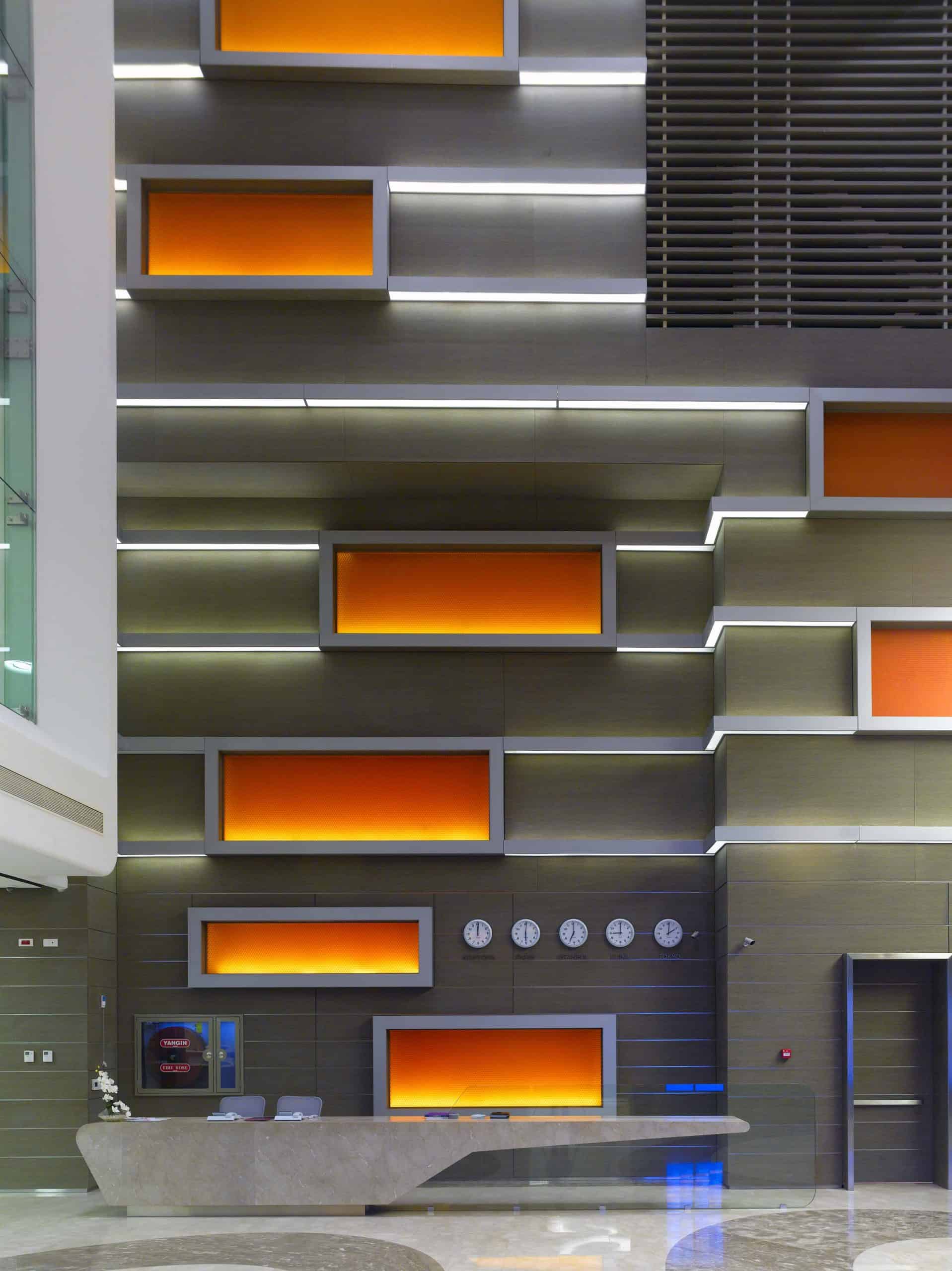 The main distinction of Acıbadem Maslak Hospital is its versatile association with the area of future’s trade center on the direction of city expansion where several cultural and social facilities are located. Besides its proximity to the city center and easy transportation facilities including the subway directly connecting to the hospital, another major charateristic is its unique position almost inside the city forests. The microscopic view of epithelium tissue, which is a crystallized net, is used as the base for the conceptual interior design in patient floors and taken as the distinctive mark of the design. The shape of the epithelium tissue is stylized by merging the form into one plane and applied to ceilings as concealed lighting. The patients are taken to their rooms through this specifically illuminated environment. In the patient rooms, a continious arc shaped unit has been designed which covers all technical equipments and special lighting components. The form of the unit is designed for giving the feeling to patient that he/she is at the focal point of all attention and services. The comfort of the patients are increased with various acoustic solutions such as carpet floorings, acoustic ceilings and second glass shell on the façade to prevent the traffic noise while silent common areas are designed for visitors.
