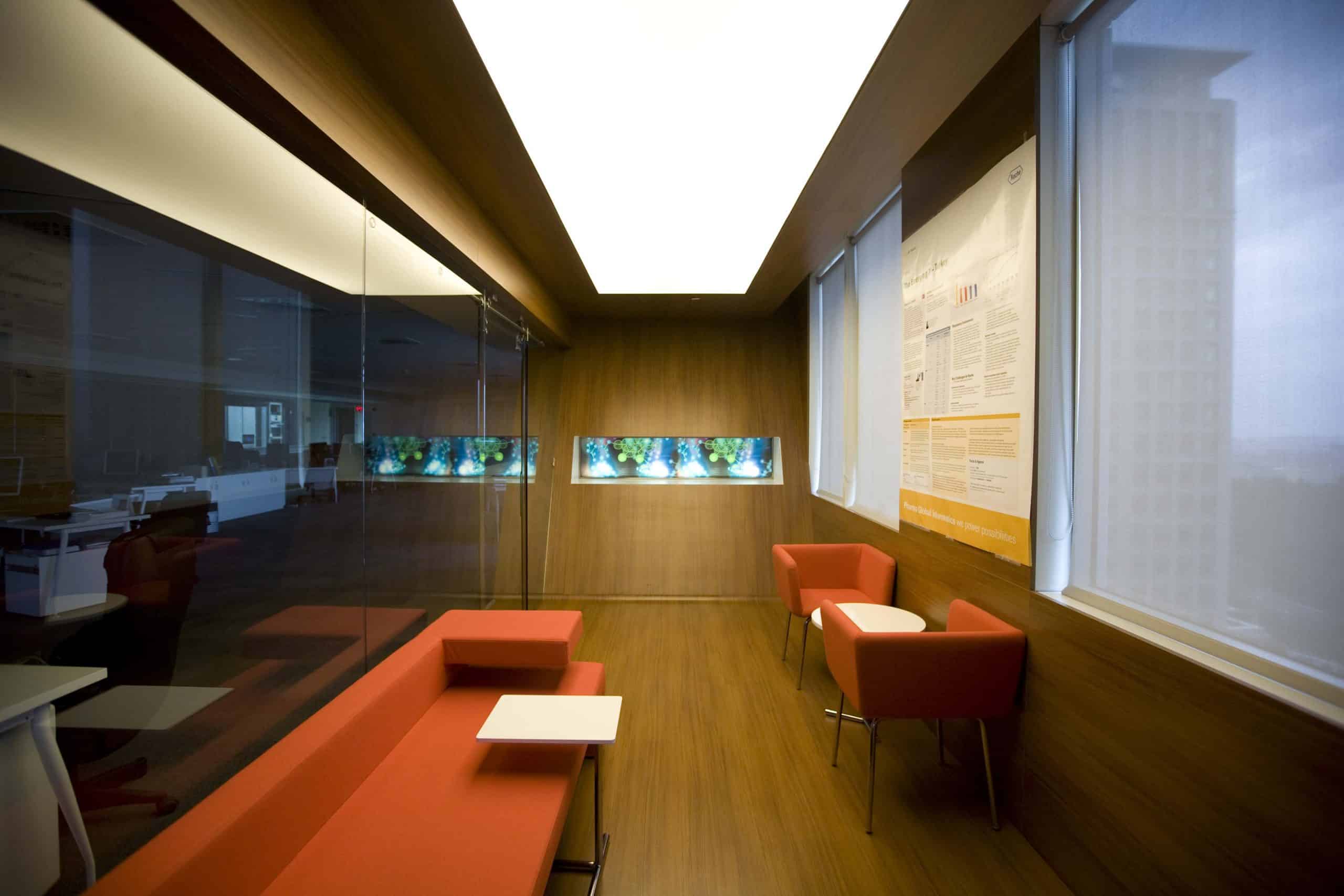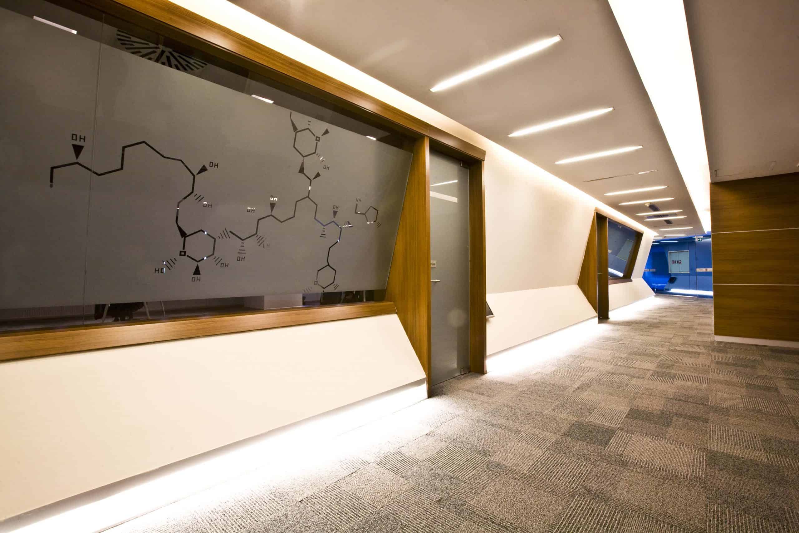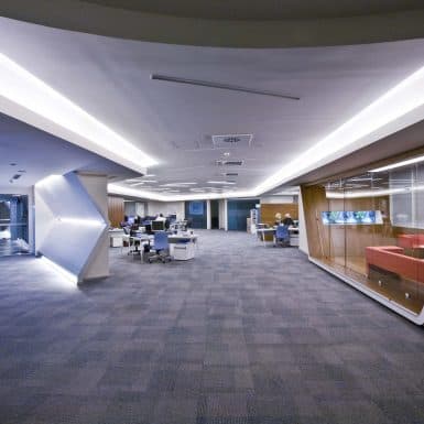 In this region where there is a dense dispersion for work centers, the project has been concluded by evaluating Roche’s corporate data and reconstruction criteria together, at the 18th floor and within an area of 6000 m2. In accordance with the corporate approach of Roche, an expectation of not creating a direct reference or a logo based on evocation has been the driving factor of this project. All other design criteria have been implemented as function based; only on the cases of repeating floors, mirror surfaces are coated with the forms and colors evoking the logo; the work station designs implemented to locate the essential personnel number into the existing area, conference halls, presence chambers on each floor have been designed as the characteristic project components and it is how the project was concluded. This multi directional component of the design has been implemented by melting along with the disorganized concept of lighting.